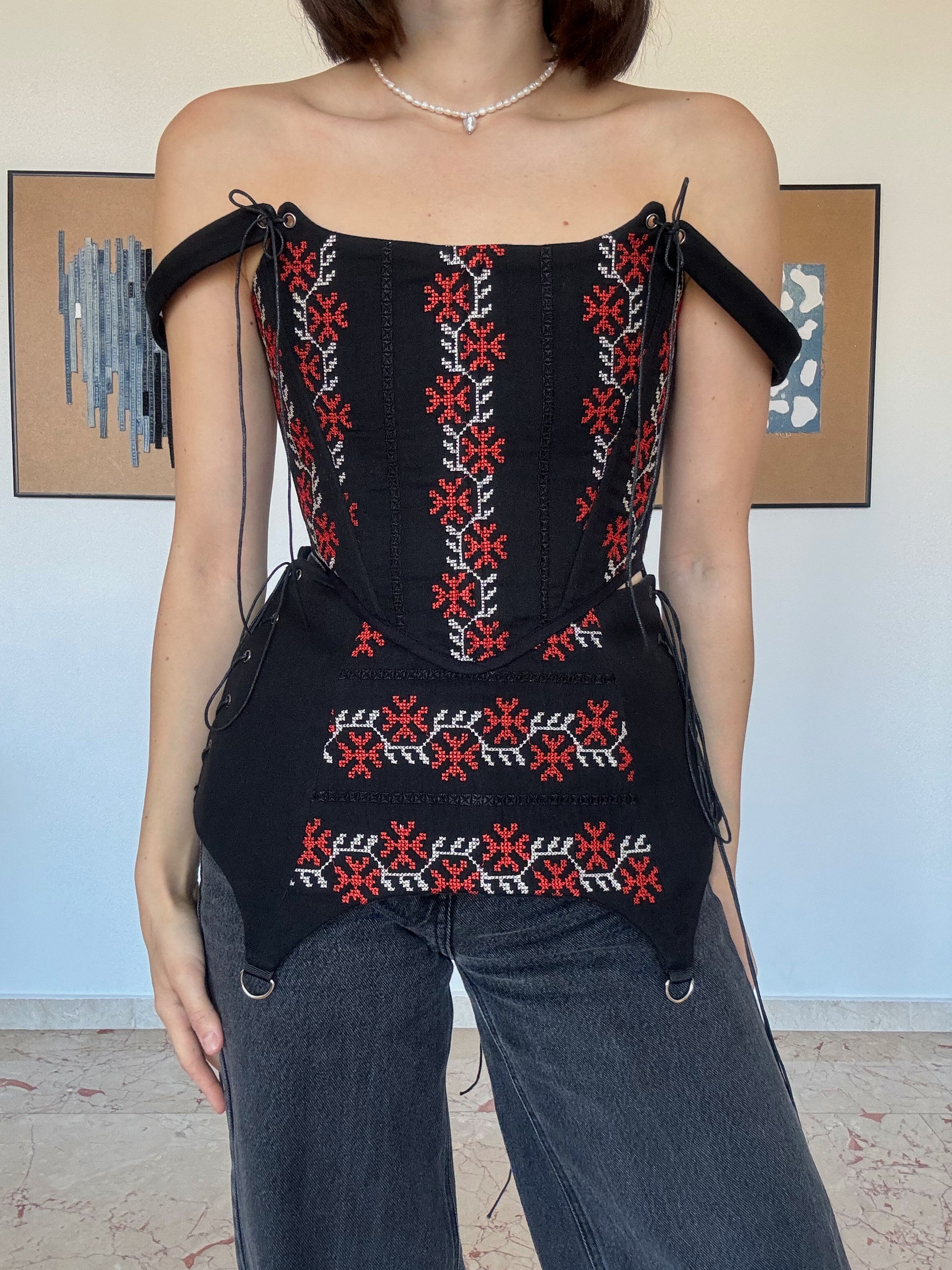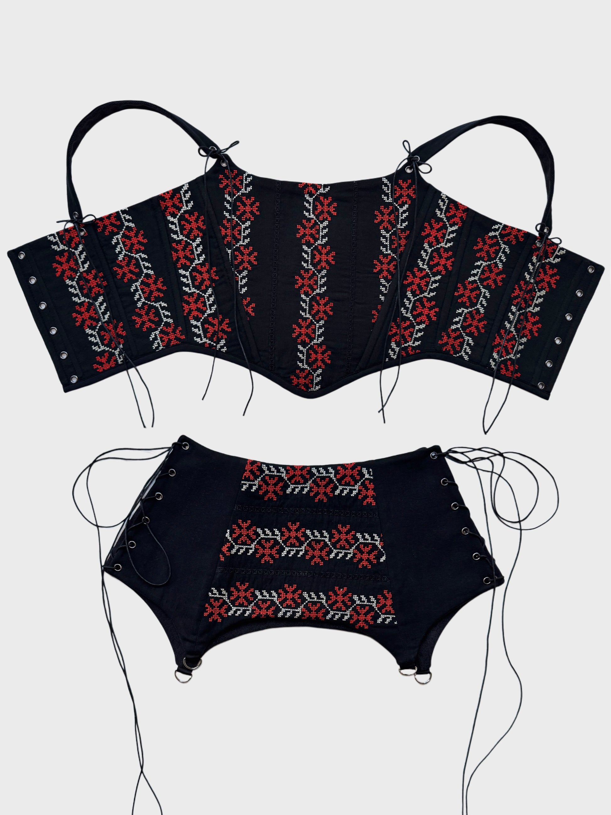 Romanian Folk Corset + Corset Belt with geometric motifs